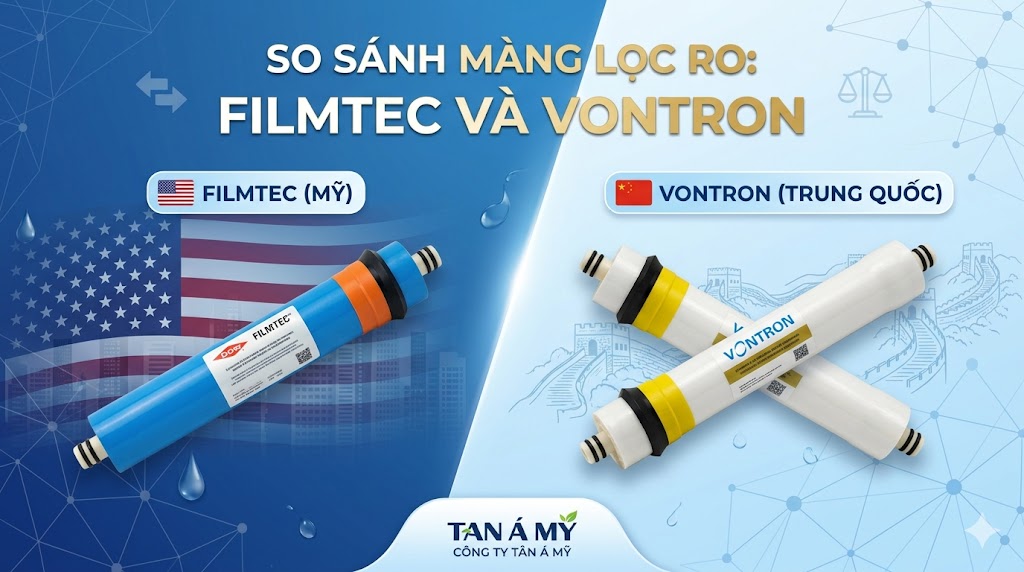 So sánh màng lọc RO Filmtec (thường được gọi là Dow Filmtec, nay thuộc DuPont – Mỹ) và Vontron (Trung Quốc) là sự so sánh giữa một thương hiệu cao cấp toàn cầu và một thương hiệu phổ biến với mức giá cạnh tranh. Cả hai đều được sử dụng rộng rãi tại Việt Nam cho cả máy lọc nước gia đình và hệ thống công nghiệp.